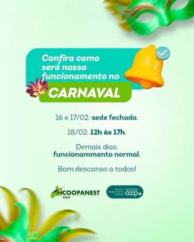 FUNCIONAMENTO COOPANESTPI | FESTIVIDADE CARNAVALESCAS